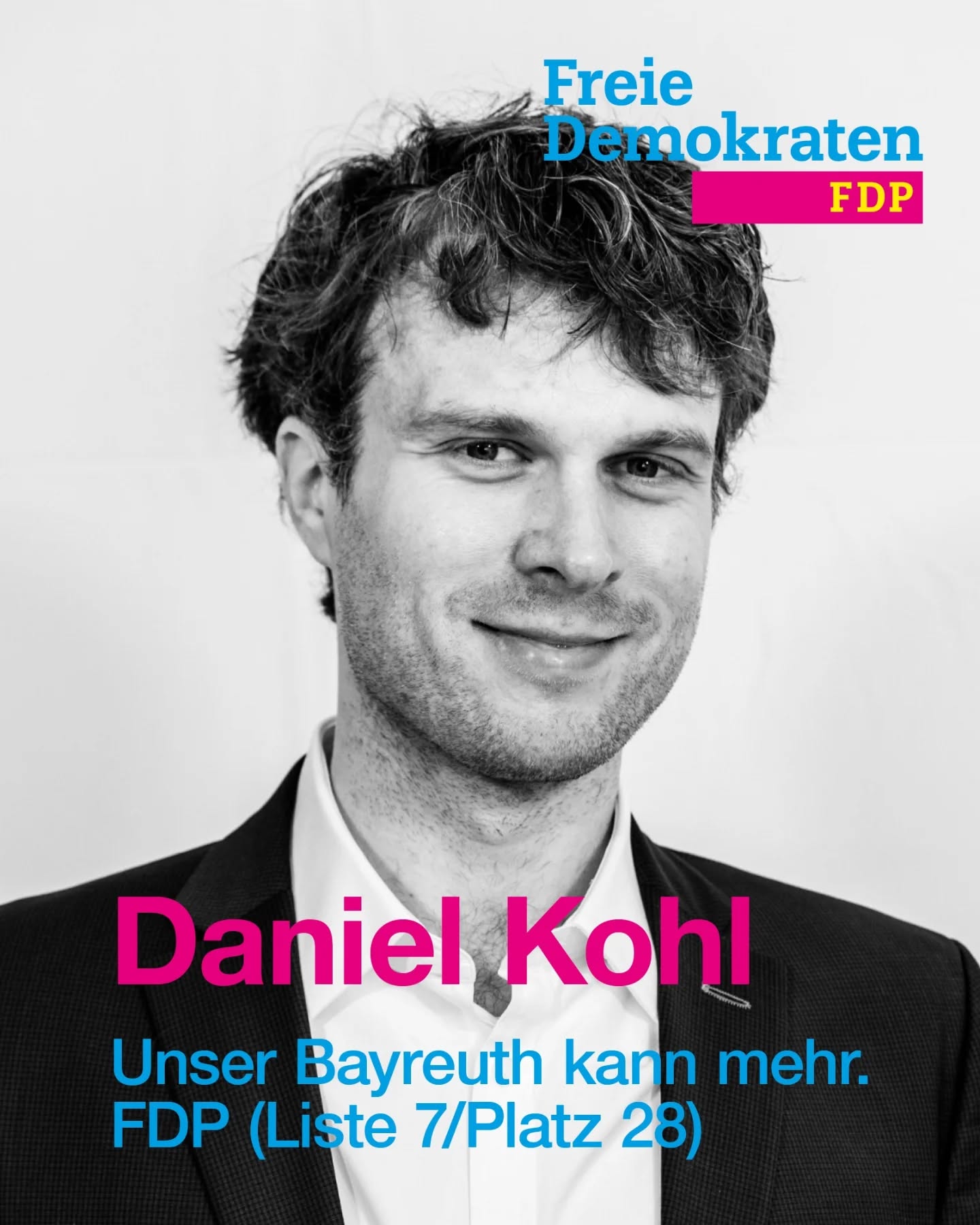 Mit einem kleinen Sprung in der Liste geht es weiter mit unserem Listenplatz 28: Daniel Kohl ist 35 Jahre alt, kam 2012 zum Masterstudium der BWL nach Bayreuth und lebt heute mit seiner Frau und zwei Kindern hier. Aktiv im musischen und sportlichen Bereich, vor allem als Fußballfan seines ältesten Sohnes und selbst als Fußballschiedsrichter. Für ihn zählen Fördern und Fordern, Radfahren, Familie, Sport und Mut zur Veränderung. Er möchte Bayreuth lebendig, modern und familienfreundlich gestalten. ⚽🚴♂️✨